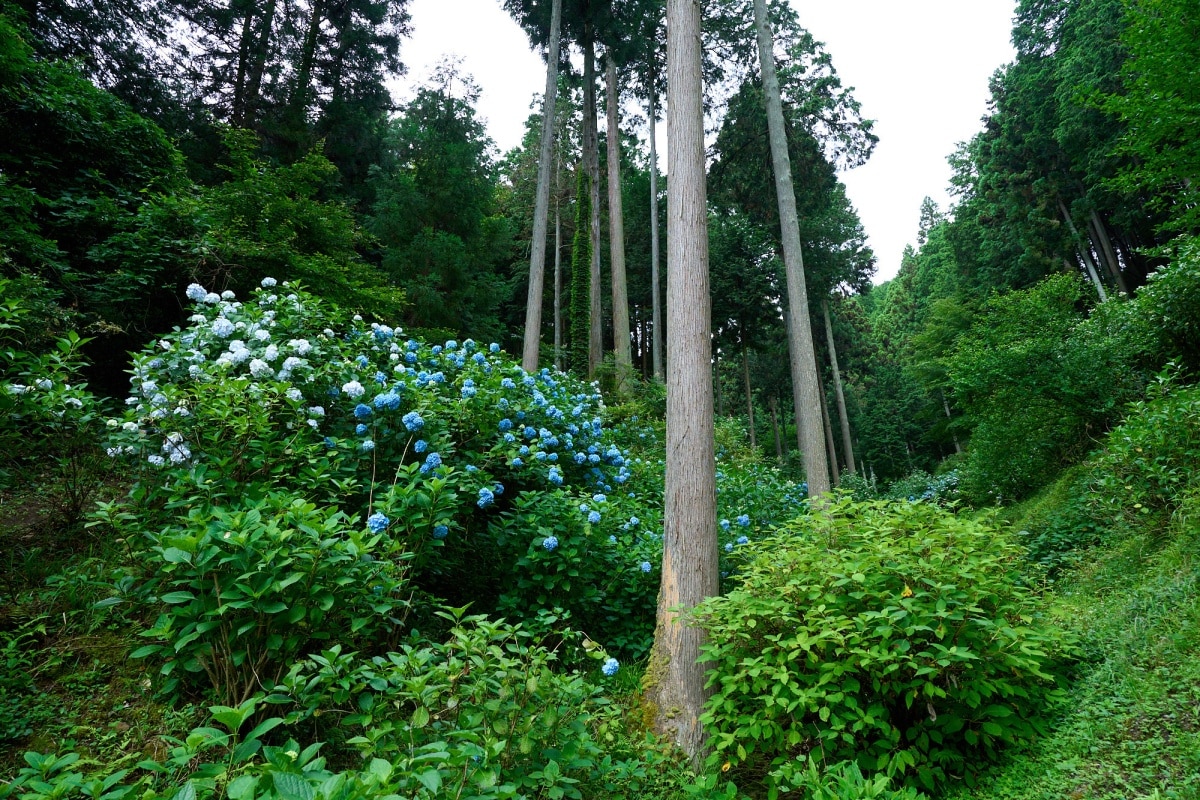 A 17th generation steward of the mountain, Minamisawa passed away in 2023 at the age of 93. His ancestor’s graves lie along a narrow trail that winds through a towering cedar forest and, in his forties, Minamisawa began planting a few hydrangea seedlings along the trail to beautify his visits to the family plot. Encouraged by the admiration of visitors, he taught himself how to cultivate, grow and maintain the flowers, expanding the plantings year by year. He even climbed and pruned the tall cedars in the forest to let more sunlight reach the flowering shrubs below.