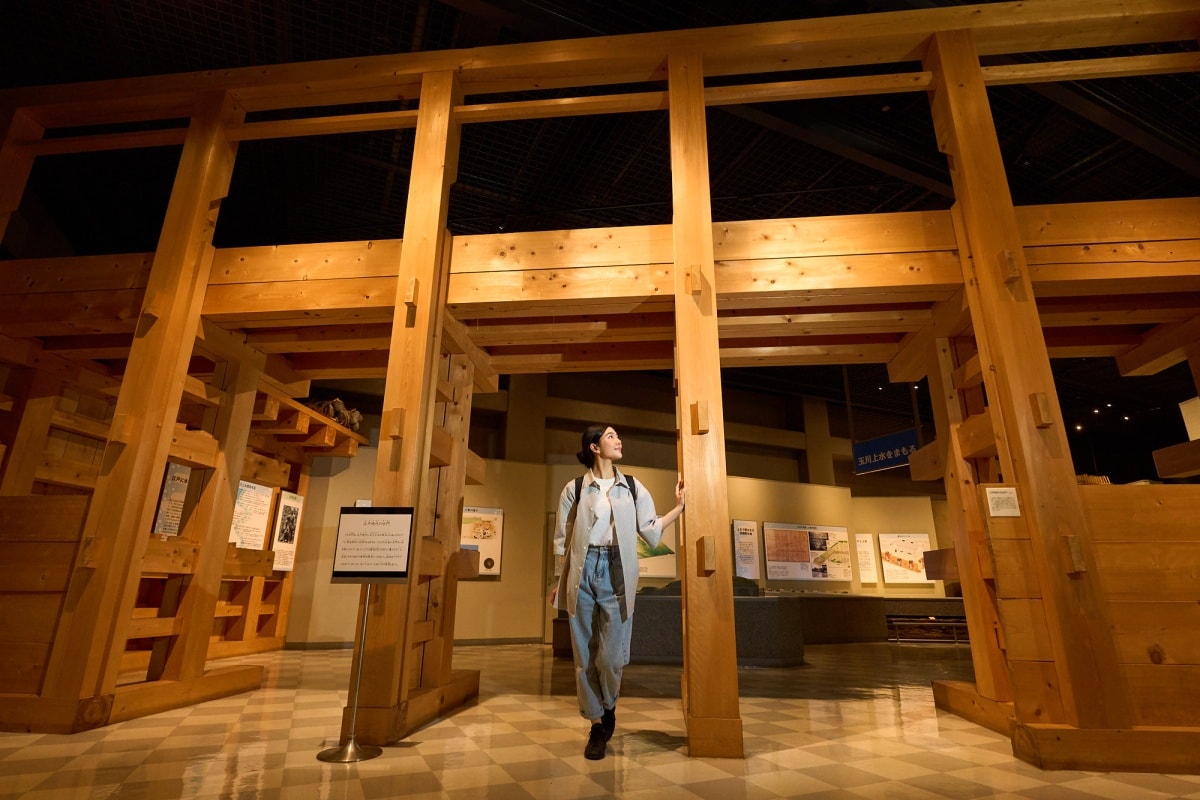 Farther in is the Former Shimoda Residence, a farmhouse reconstructed from 1847 and designated an Important Tangible Folk Cultural Property. With its thatched roof and period tools, it brings village life of the time within reach.