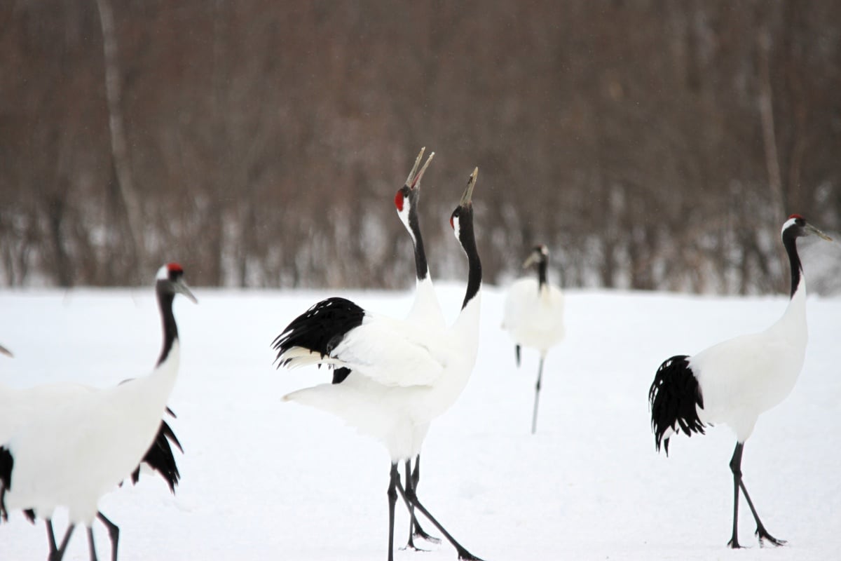 Many visitors visit the park to catch a glimpse of the red-crowned crane, one of Japan’s most iconic animals. Once on the brink of extinction, they have recovered to form a flock of some 1,700 birds, thanks to conservation programs.