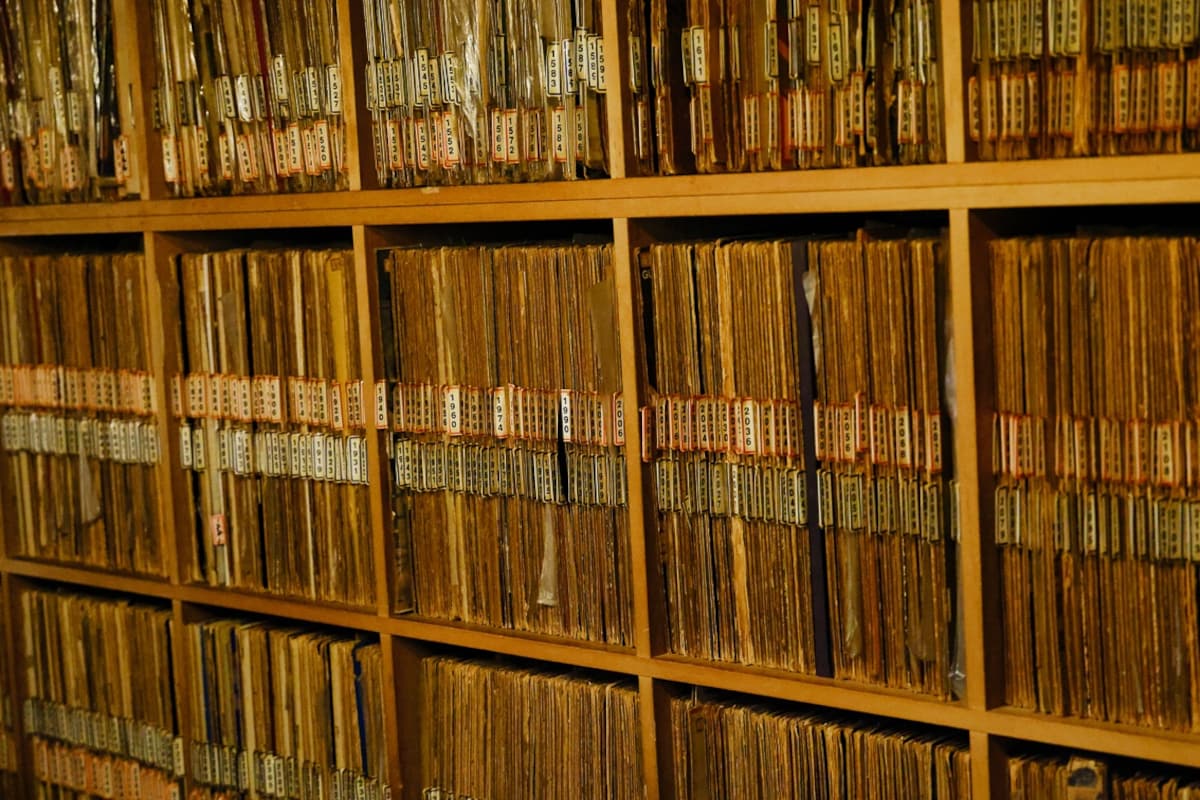 A small corner of Downbeat’s impressive collection of approximately 3,500 jazz albums.