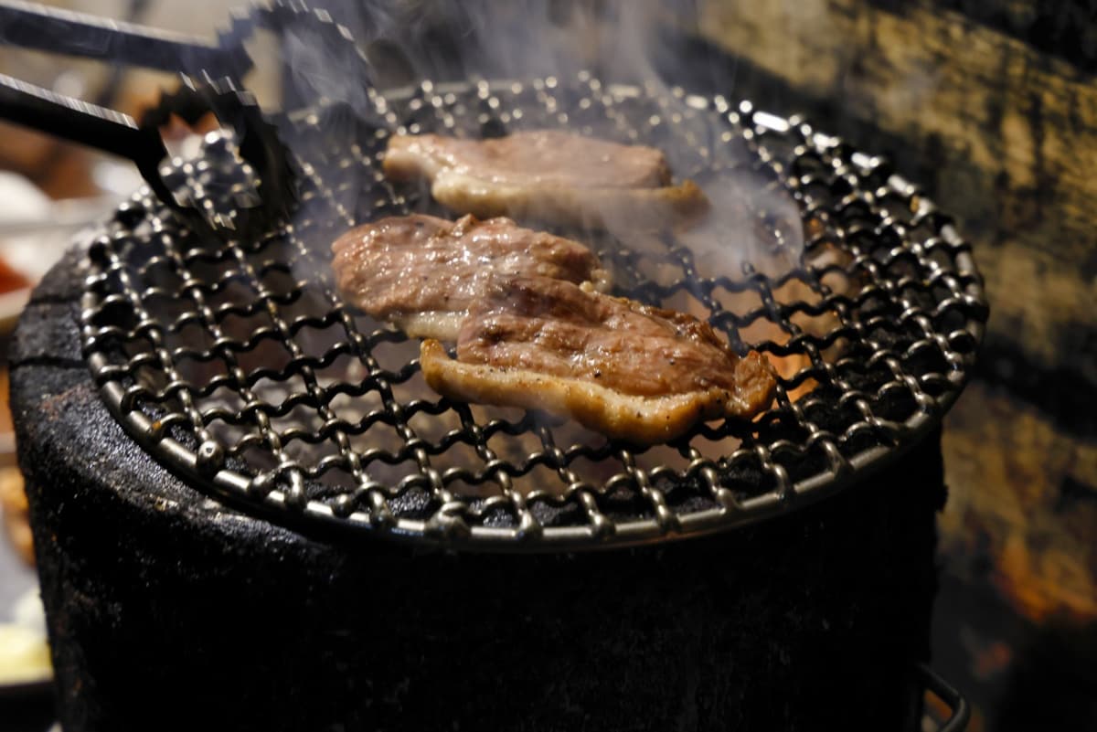 Even on a chilly night, customers crowd outside Noge Time to cook up their own grilled meat.