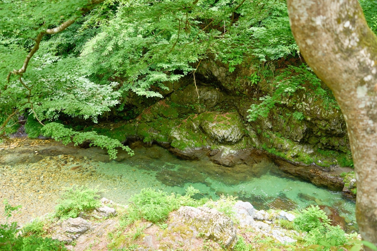 苔むした岩肌と澄んだ水。南秋川には手つかずの自然が今も息づく。