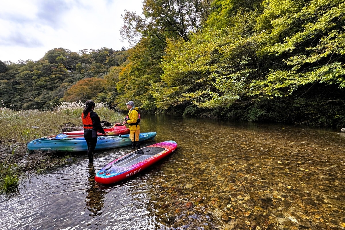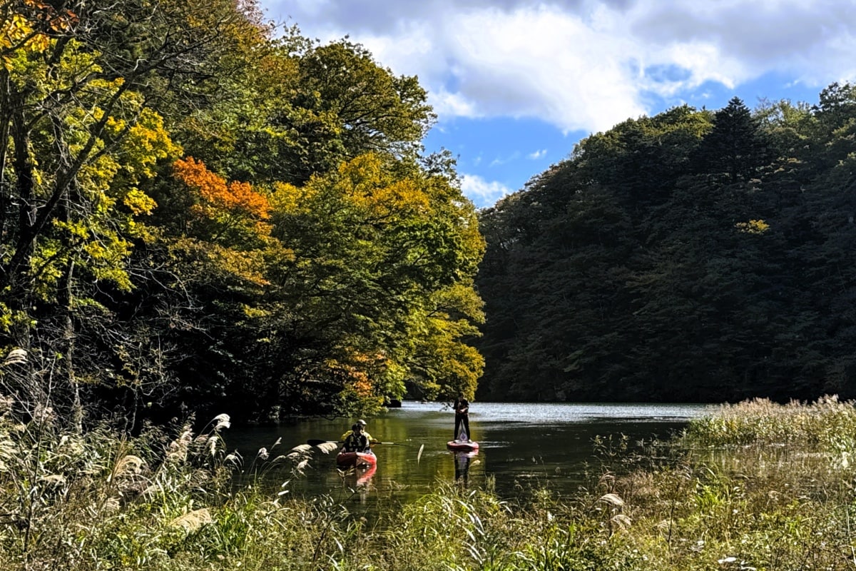 退房後僅需 5 分鐘車程,來到板室水壩湖(板室ダム湖)進行 SUP 立槳體驗。這處那須高原最近的水壩湖,平時禁止進入,在 Nature Planet 教練細心指導下,即使初學者也能在自然的環境下安心體驗 SUP 立槳。站在平靜湖面上,被周圍山巒環抱,身心就像獲得徹底重整。秋季時紅葉映照在湖面上,與自然融為一體的珍貴活動,適合各年齡層參加(需事前預約)。