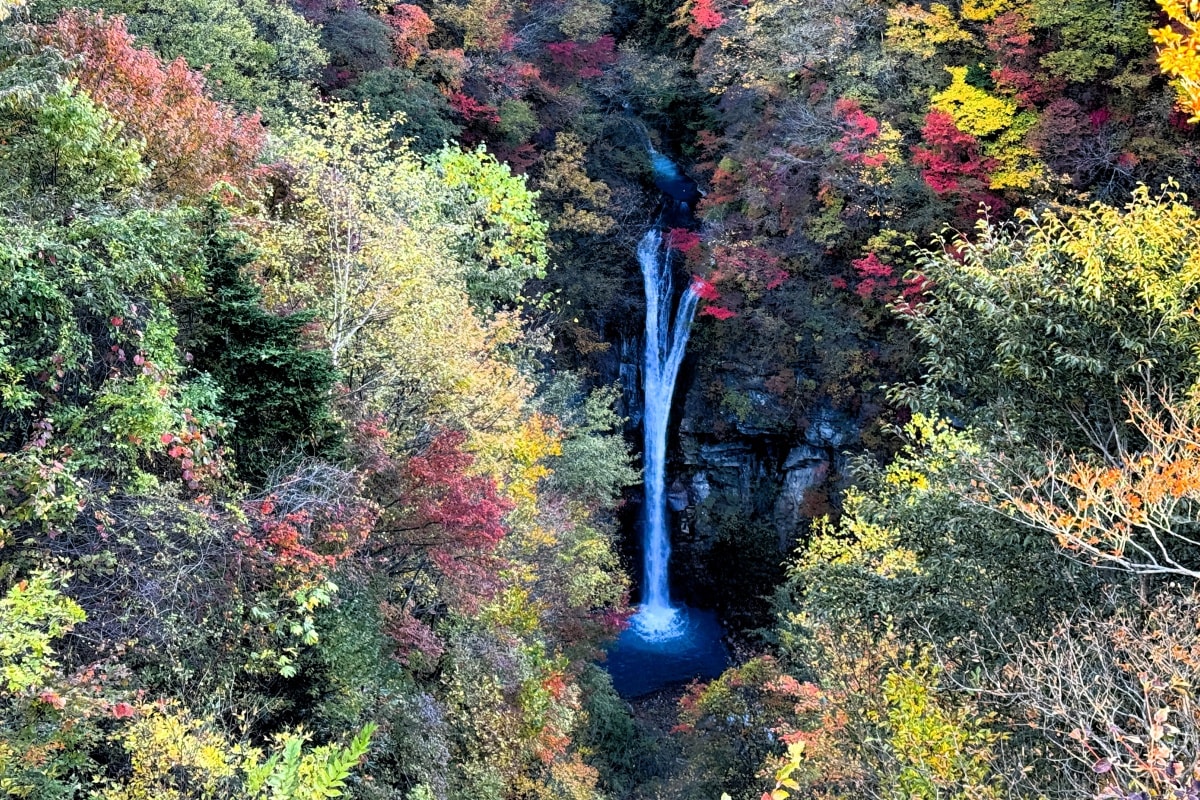 午後可依時間造訪周邊紅葉景點。像是深山水壩(深山ダム)秋季被紅葉圍繞,水壩景致壯麗動人,湖面映照著層層疊疊的秋色,是攝影愛好者不容錯過的秘境。而駒止瀑布(駒止の滝)則以兩層落差與山林紅葉交織,宛如一幅流動的畫卷,瀑布水聲與楓紅相映成趣,展現大自然的詩意之美。