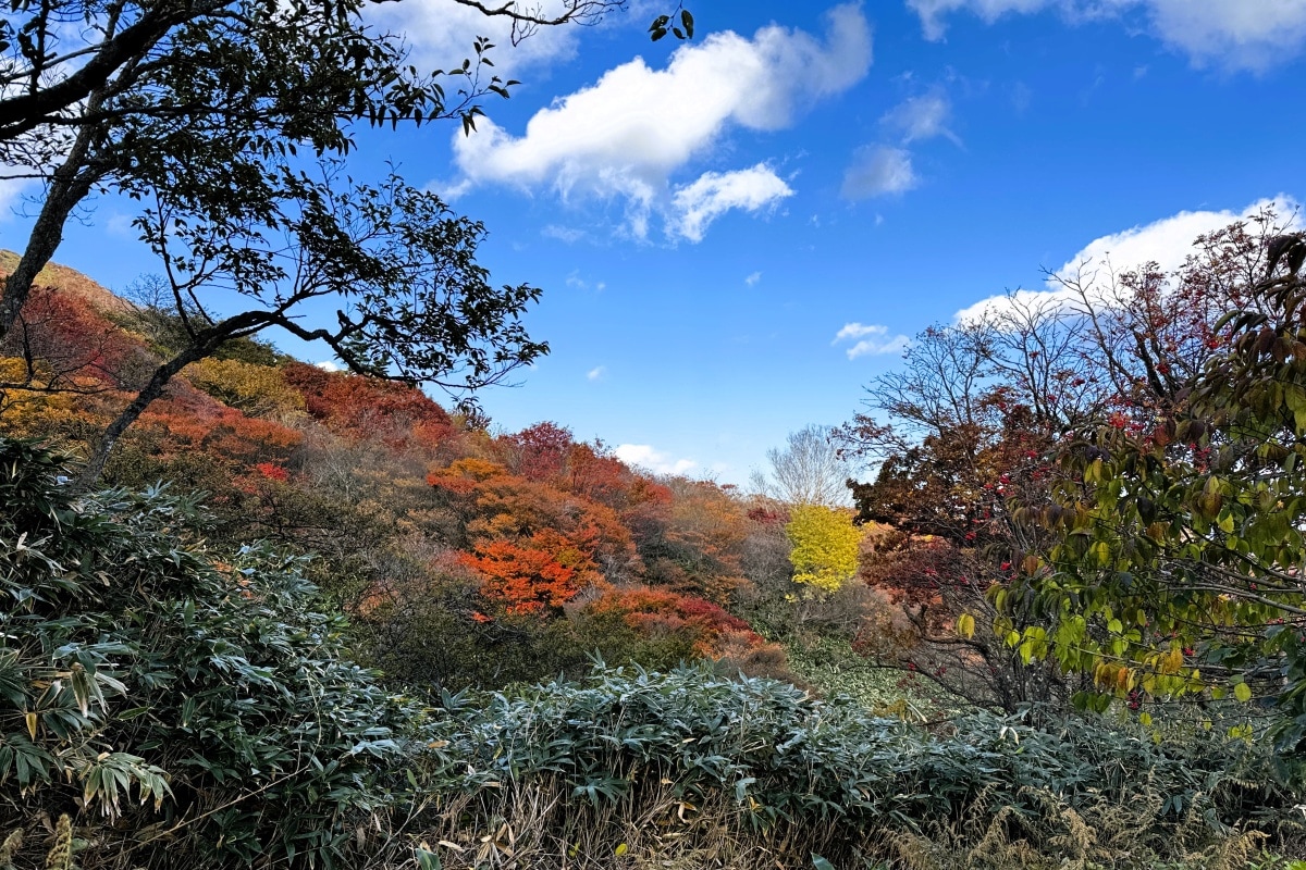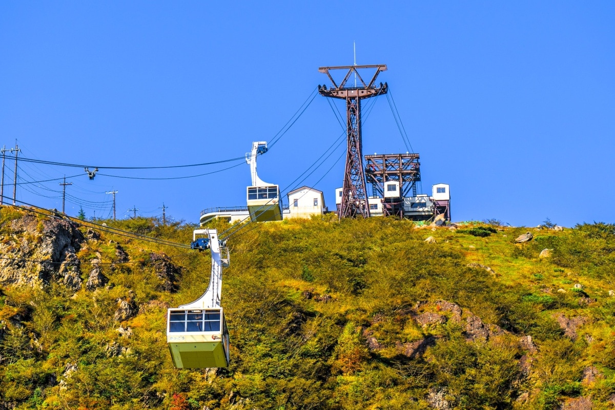 隨後還可驅車前往那須纜車(那須ロープウェイ)山麓站,搭乘纜車僅需 4 分鐘便能登上標高 1,684 公尺的茶臼岳山頂附近。秋季山肌染上紅黃金色,眼下展開的紅葉全景令人震撼;在澄澈空氣中俯瞰那須高原雄偉自然,山頂還可進行輕鬆的登山健行。
