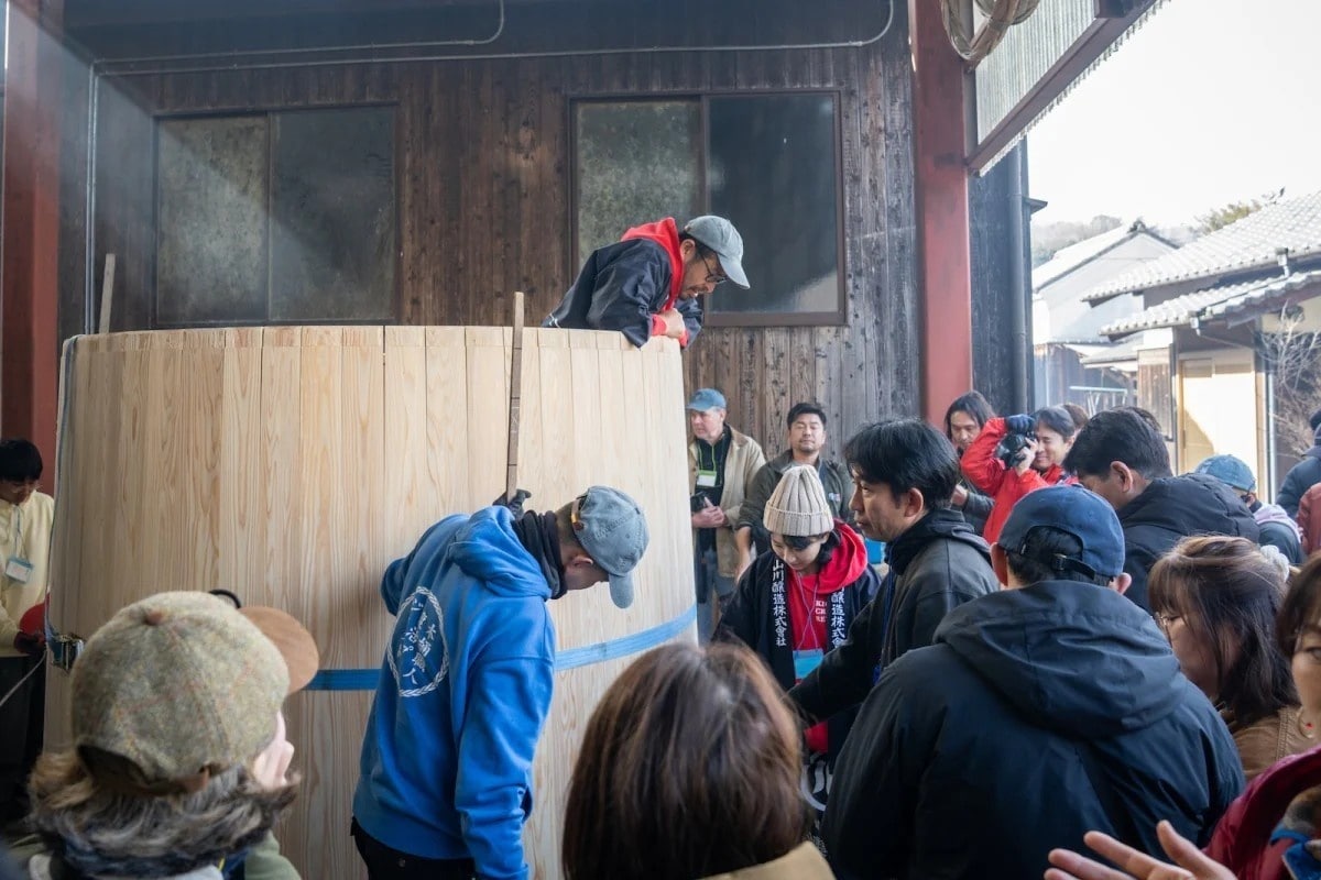 每年二月,這項計畫會舉辦為期三天的「木桶製作復興祭」,參與者跟著老師傅一起,從頭到尾親手完成一只木桶。祭典結束後,這些桶子會運回各地的生產者手中,真正投入釀造使用。