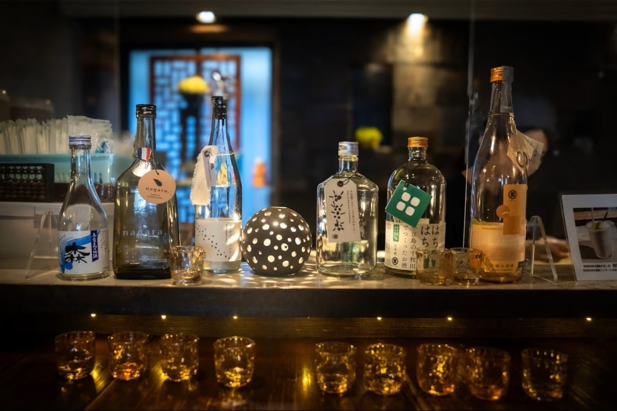 森國酒造店內的品飲吧檯,陳列著各款讓人驚喜的清酒。(攝影:Cindy Bissig)
